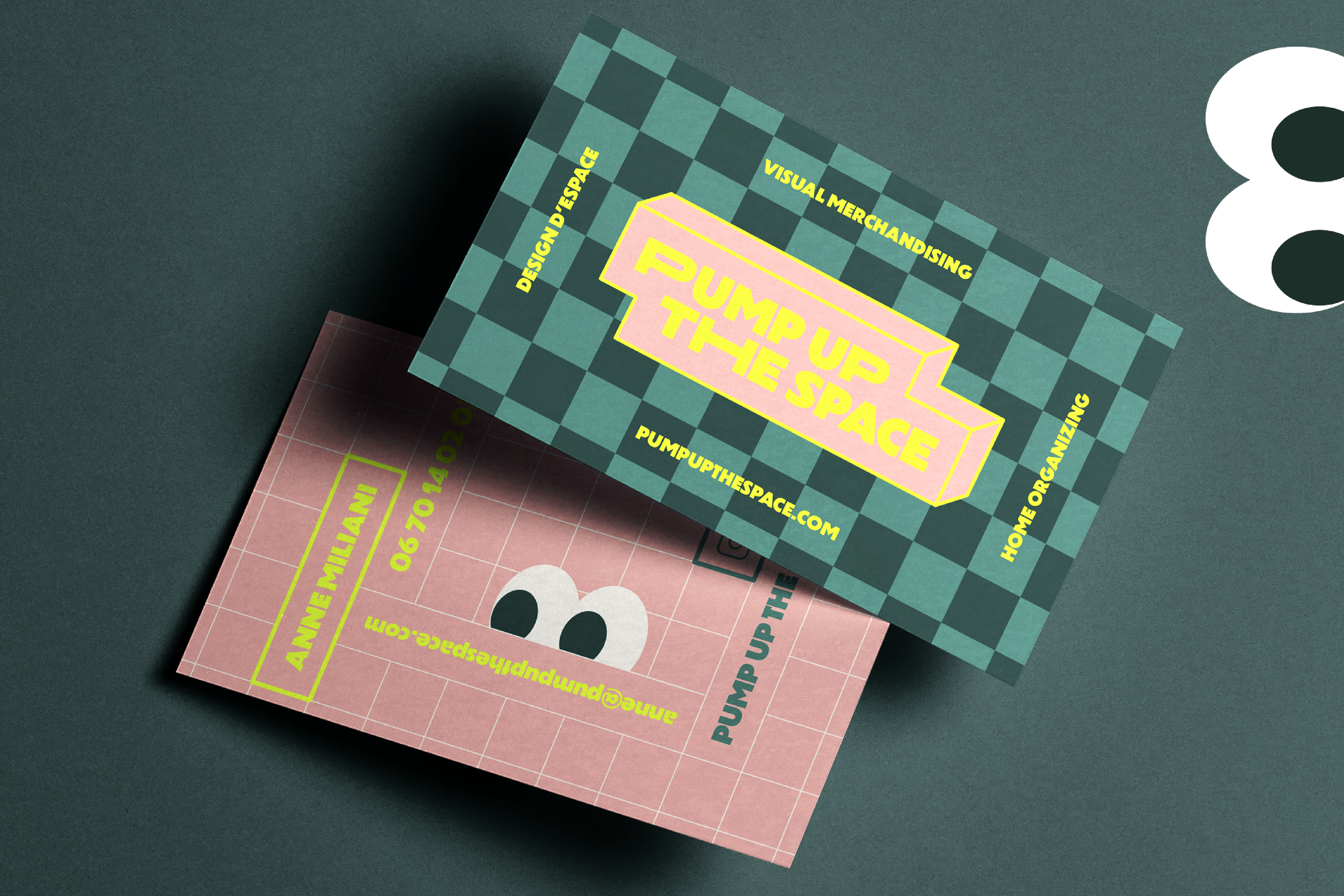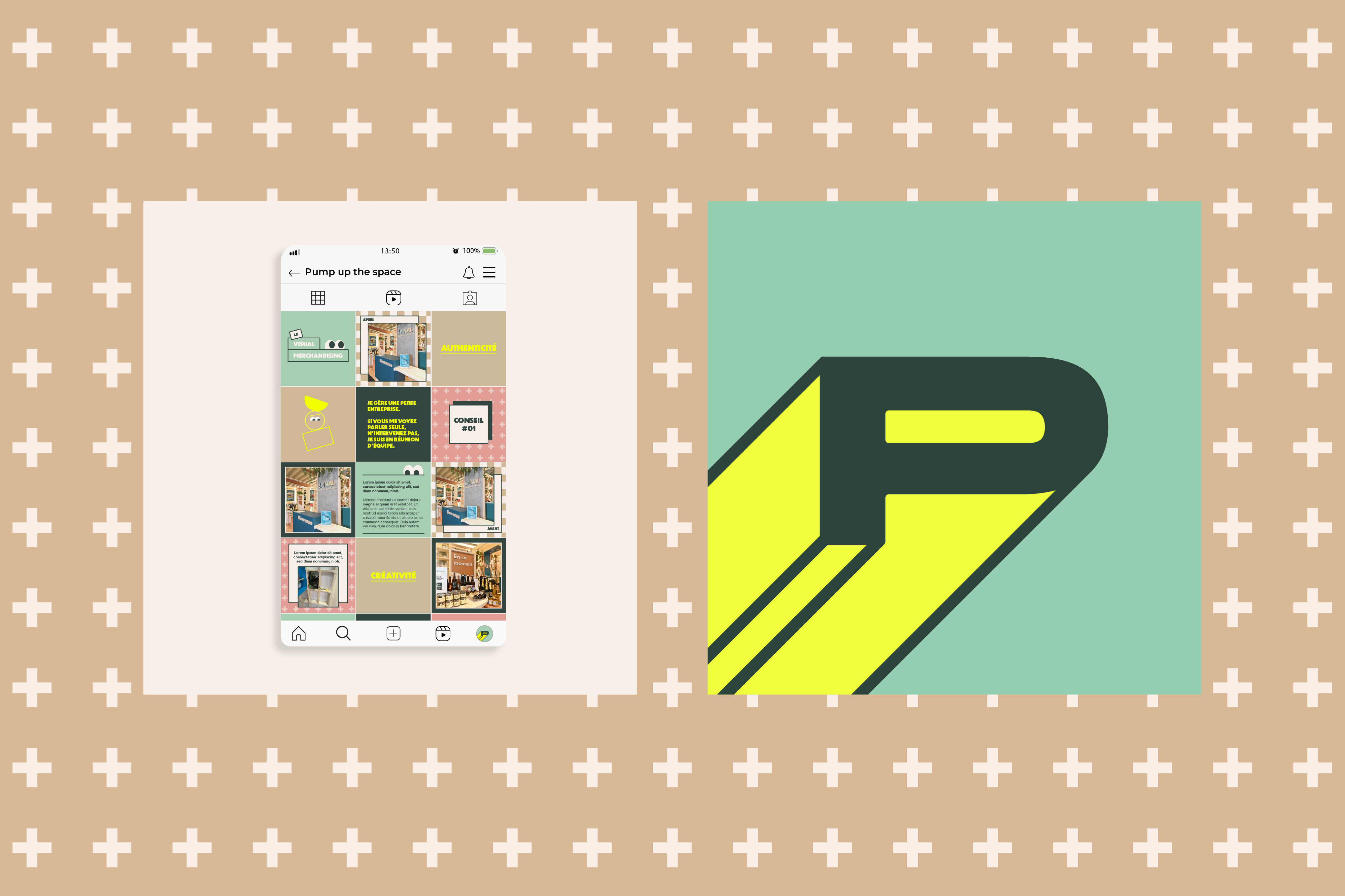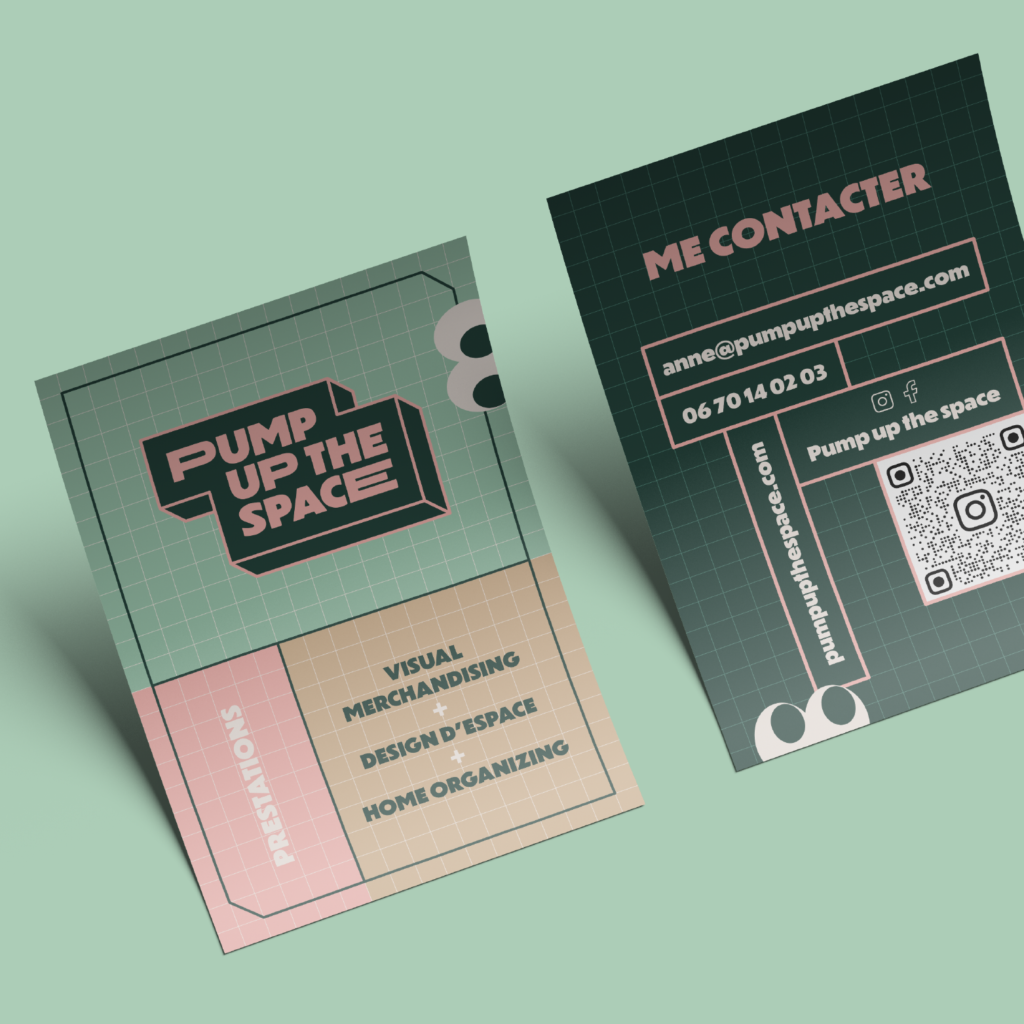 Anne est la créatrice de Pump up the space, entreprise spécialisée dans le merchandising, le design d’espace et le home organizing. Elle m’a contactée pour imaginer son identité graphique, avec des idées très précises en tête. Elle et moi, on partage un truc rare : la rigueur créative. Celle qui pousse à soigner le moindre détail, celui qu’on ne remarque pas à l’oeil mais qui fait la différence. Ensemble, on a imaginé une identité claire, modulable et singulière, à son image : méthodique, agile et enjouée.